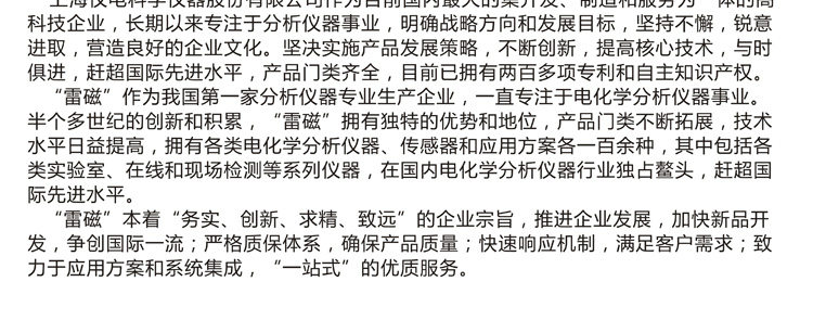 217:第二節(jié)鹽橋的補充液可根據(jù)用戶需求自行選擇。如測量樣品中較低氯離子濃度時,可以在第二節(jié)鹽橋內(nèi)填充硝酸鉀溶液,以防止**節(jié)鹽橋的氯化鉀直接滲透到樣品中,影響氯離子的測量結(jié)果。