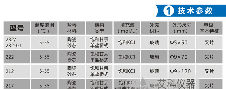 232/232-01、222、212:廣泛使用的**典型參比電極,性能穩(wěn)定可靠。高溫(超過70℃)時性能變差。電極中含有汞成分,不應隨意丟棄。